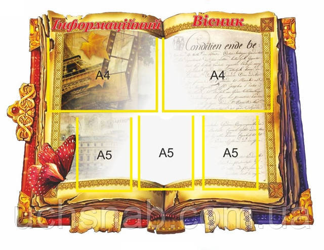 - Стенд для школи «Інформаційний ощадник» виготовлений з МДФ-3 мм (економ) з нанесенням кольорової плівки.