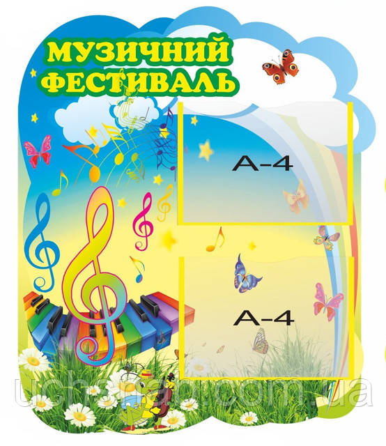 - Стенд для дитячого садка «Музичний фестиваль» виготовлений з МДФ-3 мм (економ) з нанесенням кольорової плівки.