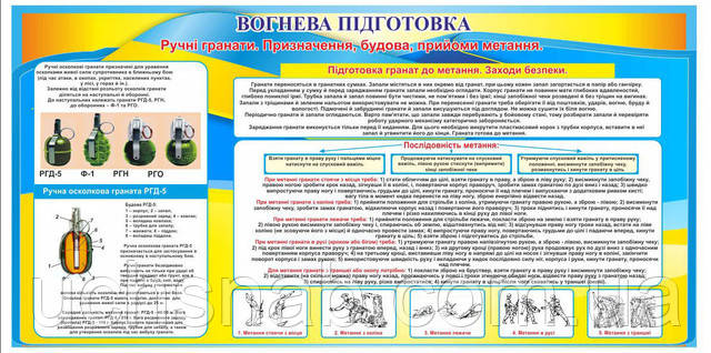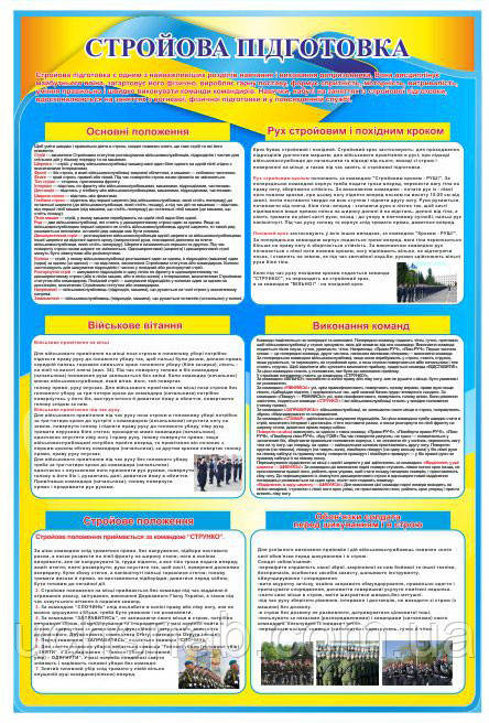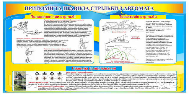 - Стенди для школи "Кабінет початкової військової підготовки" виготовлені з МДФ-3 мм (економ) з нанесенням кольорової плівки.